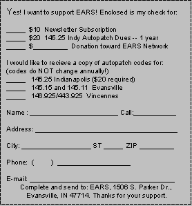 HAVE YOU SEEN THE E.A.R.S. WORLD WIDE WEB PAGE LATELY?? Check it out at http://members. aol.com/earsham/index.html